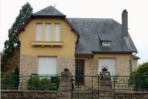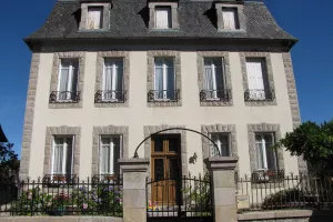 Cette maison rose aux tourelles à proximité de l'église de Meymac est le Château des Moines Larose, ou maison de Jean Ga...
