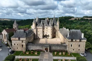 En arrivant à Jumilhac-le-Grand, la haute et impressionnante silhouette du Château de Jumilhac apparaît derrière l’églis...