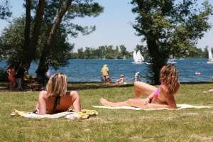 Au nord de Bordeaux, la plage du Lac est une aire de loisirs pour toute la famille, avec son sable fin, sa baignade surv...
