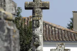 Une croix hosannière du XVème siècle, classée en 1889, et des tombes du XVIIIème et XIXème siècles en forme de sarcophag...