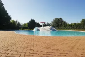Le bassin de baignade permet de profiter d'un moment en famille. L'accueil se fait vers le camping, pas au niveau du lac...