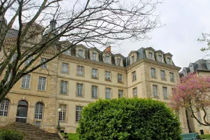 Le bâtiment se trouve à proximité de la Collégiale, reconnaissable notamment depuis le parc du Pré Lanaud grâce à son pl...